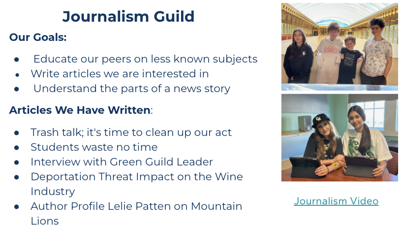 The Journalism Guild recently presented their project to the school, sharing their process, their takeaways, and their views on the importance of journalism today.
