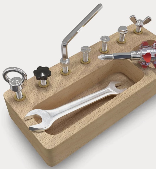 Activities involving nuts, bolts, and tools are excellent for developing practical life skills, a key aspect of Montessori education. These activities offer hands-on learning about mechanics and encourage problem-solving skills. Older children can be involved in real-life tasks like assembling furniture, providing a sense of accomplishment and responsibility.