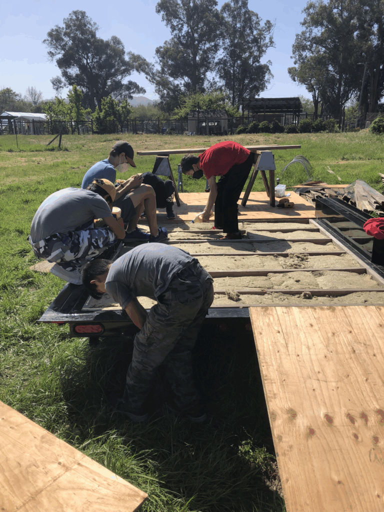 Since 2021, students at Marin Montessori’s Junior High have taken on every phase of construction: fundraising, framing, roofing, insulation, electrical wiring, finishing work. What began with a small group of 9th years and an idea—spearheaded by then-Farm Manager Kate Stout—has grown into a long-term collaboration and a real home. Thanks to the generosity of donors, students raised the funds and materials needed to make it happen.